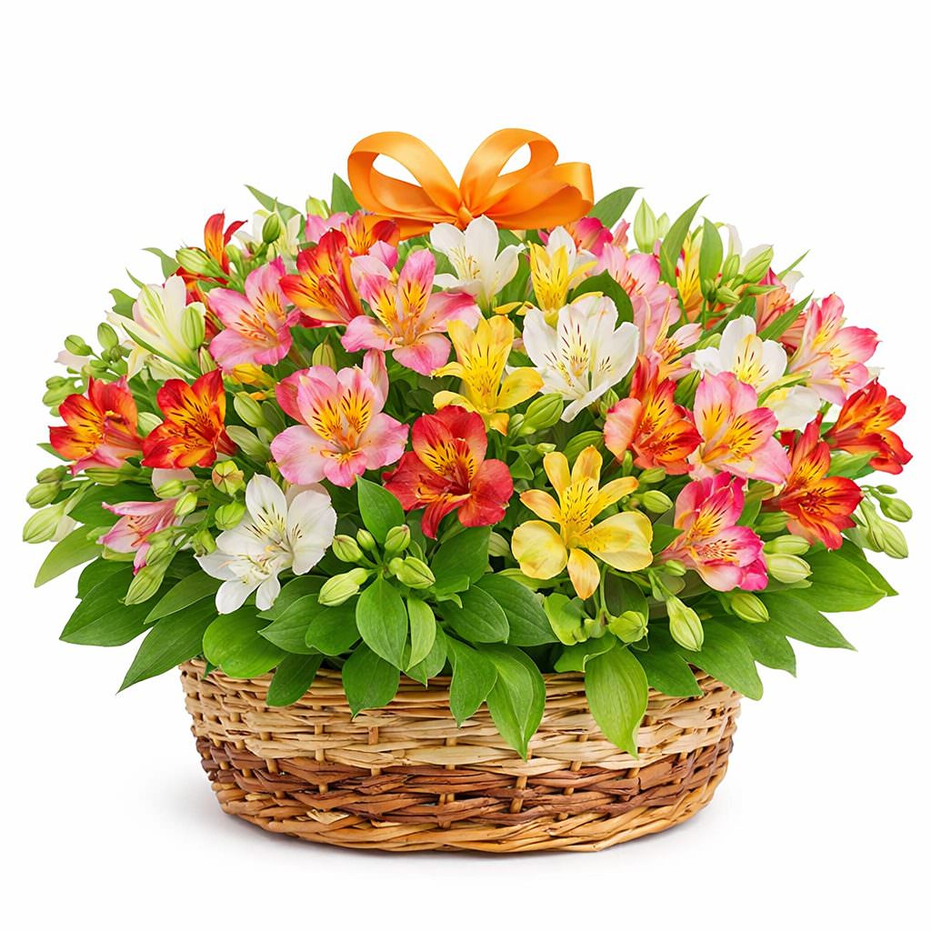 Корзинка с альстромериями «Солнечный Карнавал» с гарантией качества, цены и быстрой доставки!