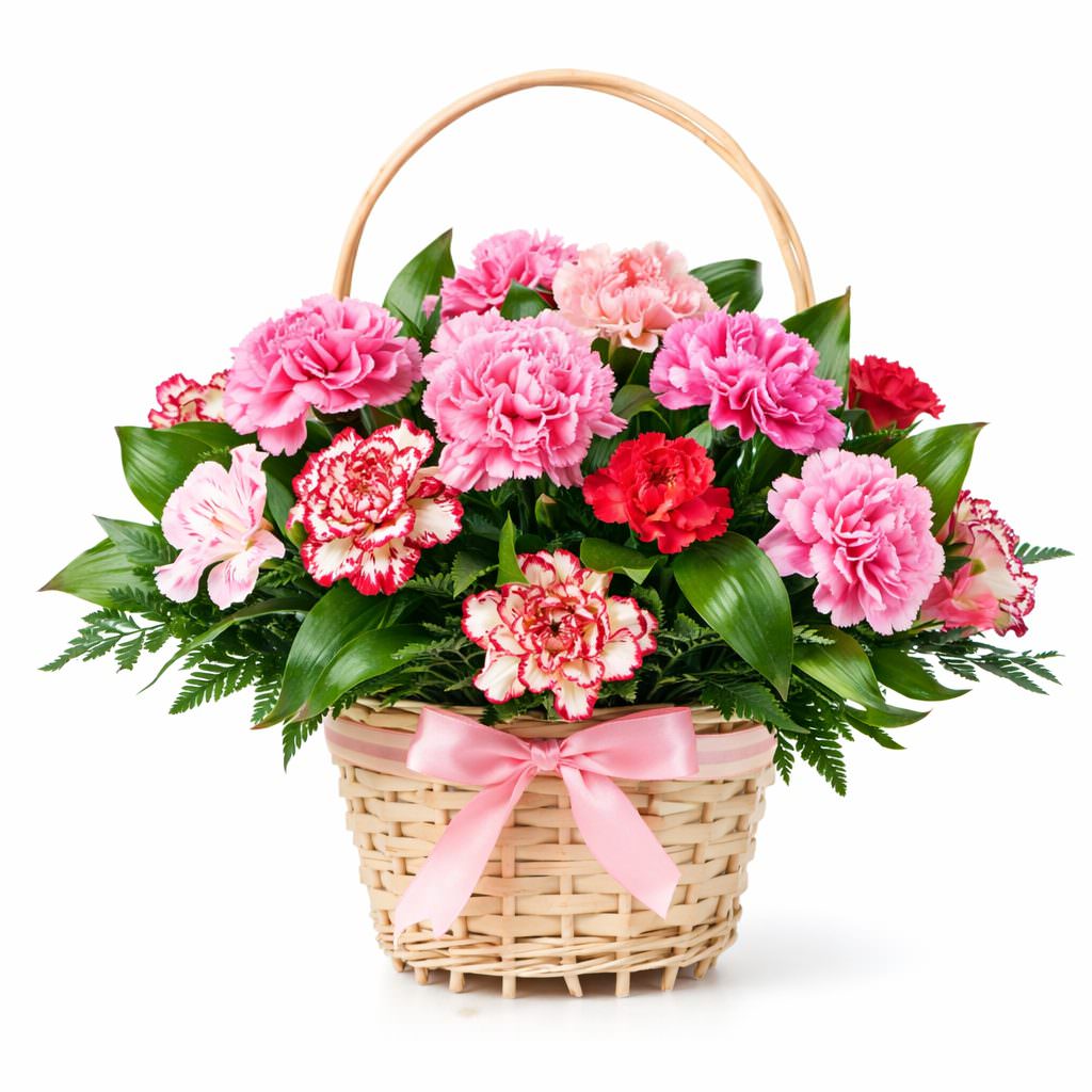 Яркие розовые и красные оттенки гвоздик и альстромерий создают атмосферу теплоты и радости. В составе композиции розовая гвоздика, красная мини-гвоздика, розовая альстромерия и аспидистра. Плетёная корзина добавляет естественности и гармонии. Прекрасно подойдет для поздравления подруги на День матери, создавая уют и праздничное настроение.