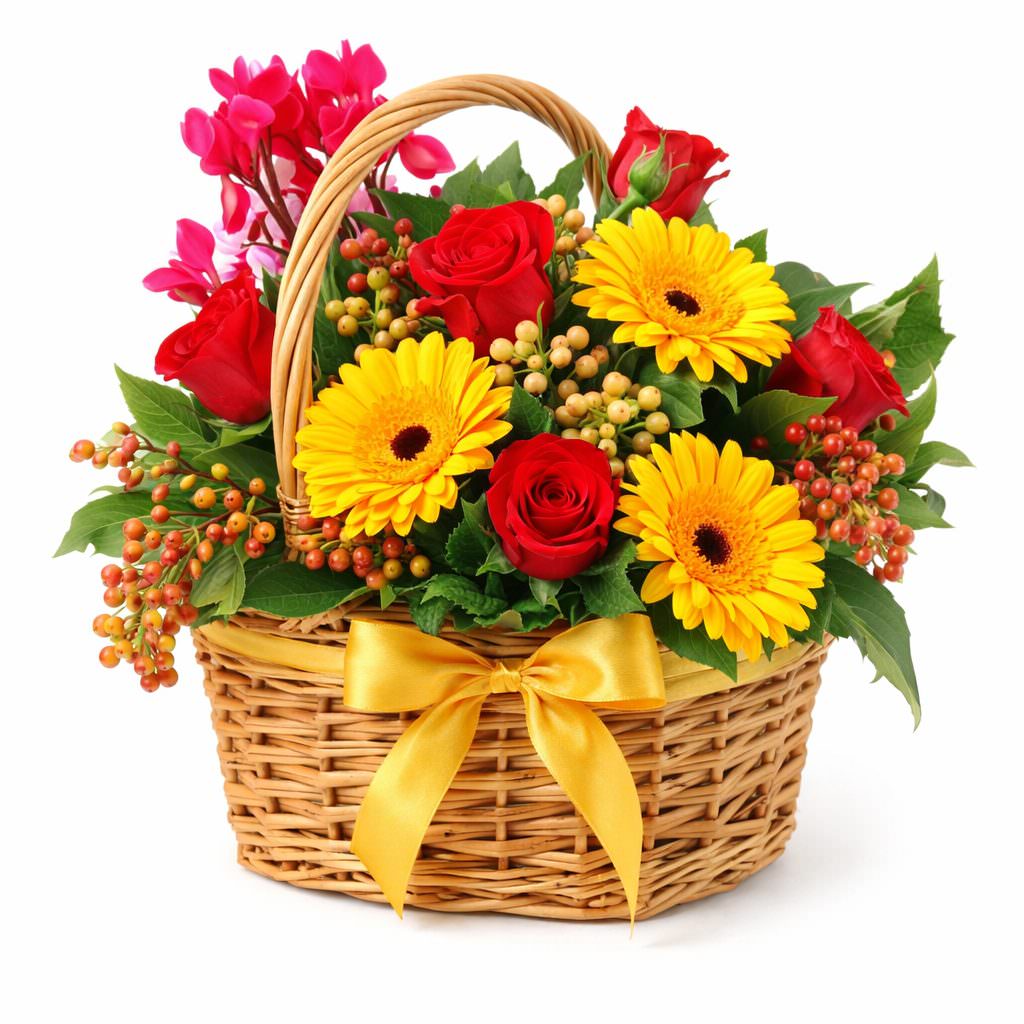 Цветы в корзине красивые «Яркое настроение» с гарантией качества, цены и быстрой доставки!